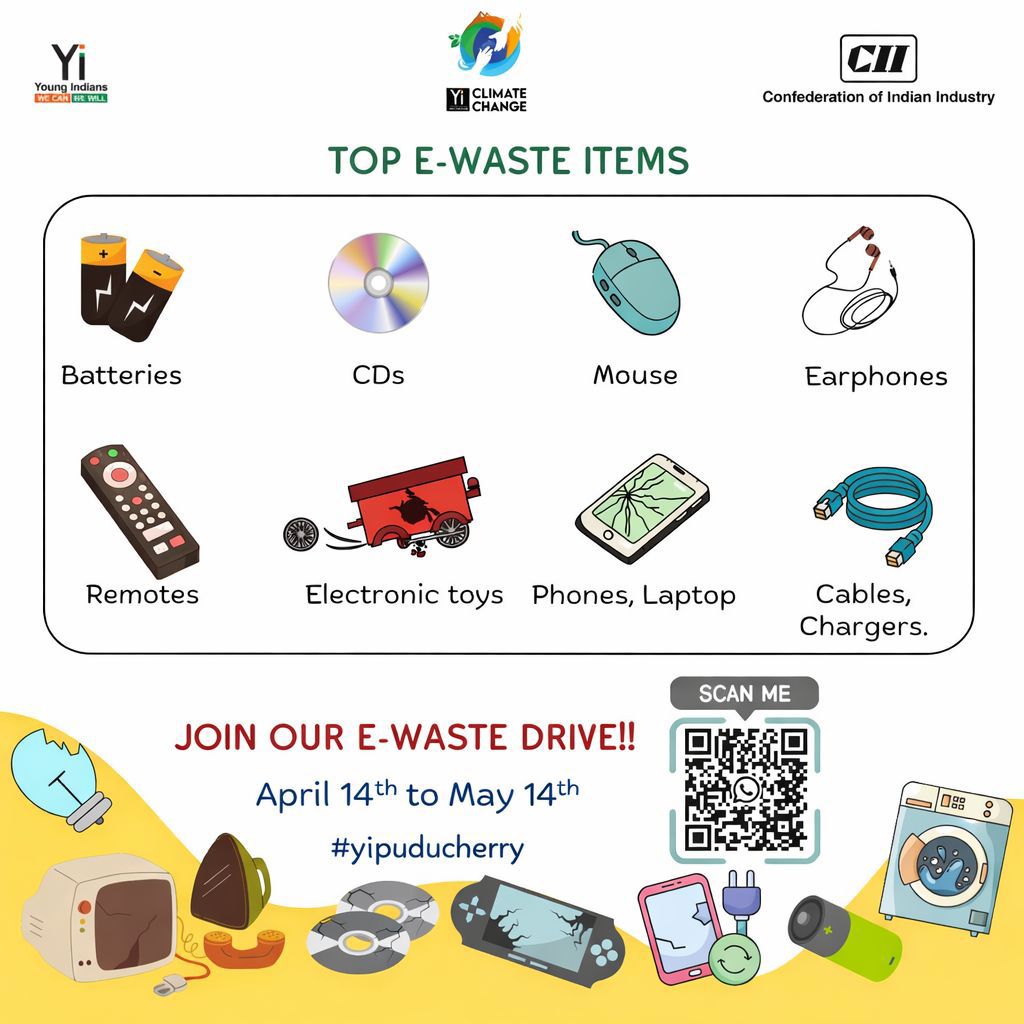 This message to announce E-Waste Drive organized by Yi Puducherry in honor of World Environment Day.